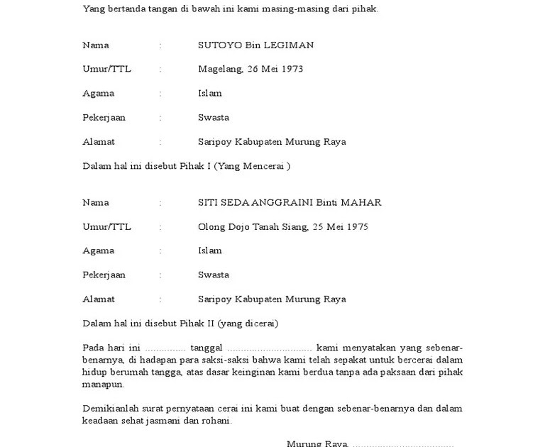 Contoh Surat Gugatan Cerai Talak Suami Kepada Istri ... from imgv2-2-f.scribdassets.com Maybe you would like to learn more about one of these? We did not find results for: Check spelling or type a new query. Surat pernyataan ikrar talak/cerai doc.